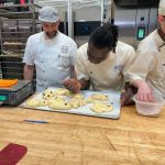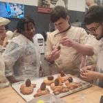 Demostración organizada por el Gremio de Panaderos y Pasteleros de Valencia para los alumnos franceses de la Escuela URMA 49 de Angers, enseñándoles la elaboración de productos típicos Valencianos.